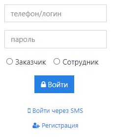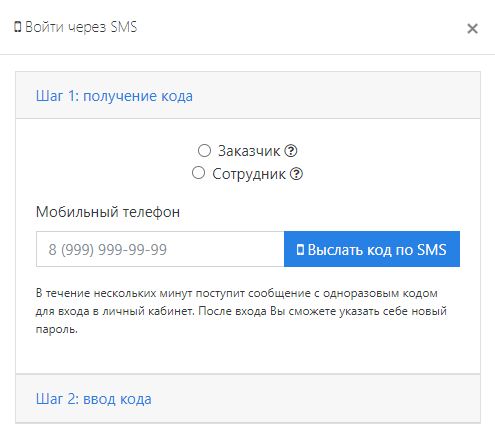 Вводите свой номер телефона и жмете кнопку "Выслать код по SMS" Далее следуя подсказкам вводим код из СМС или свой постоянный пароль, выбираете поле "Заказчик и нажимаете "Войти"